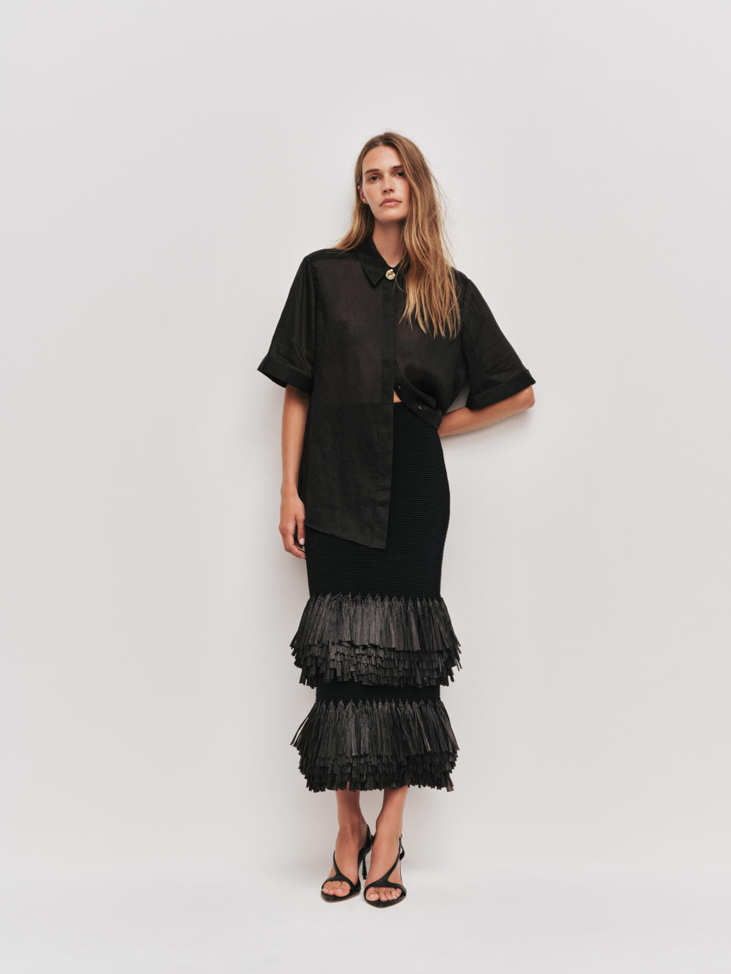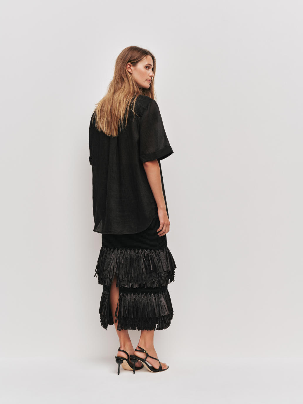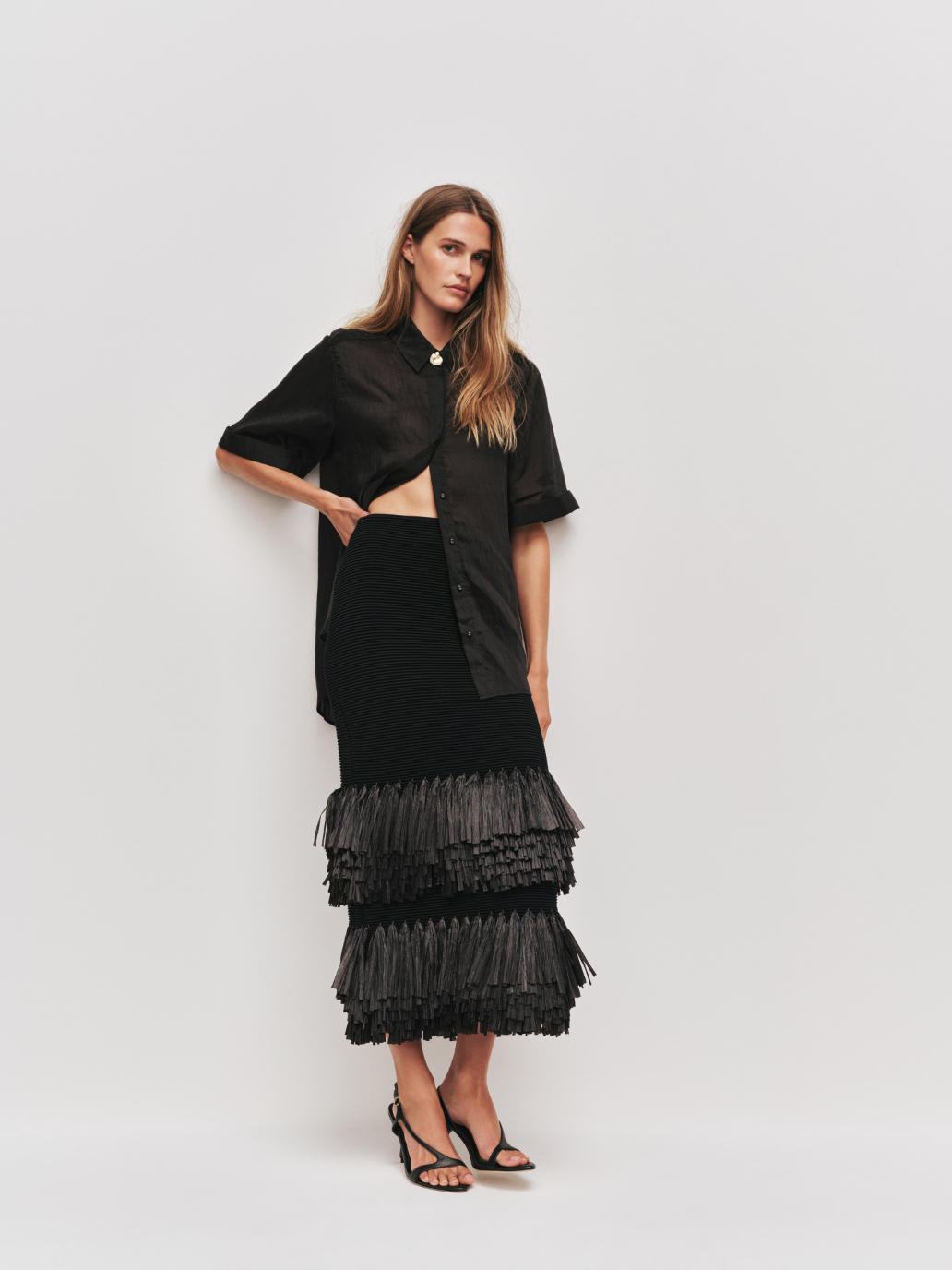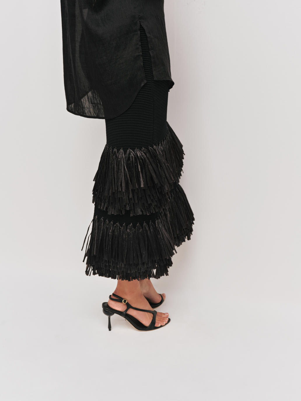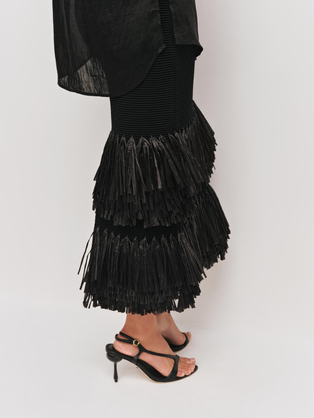 Textured ottoman knit stitch with contrast raffia tiered hem