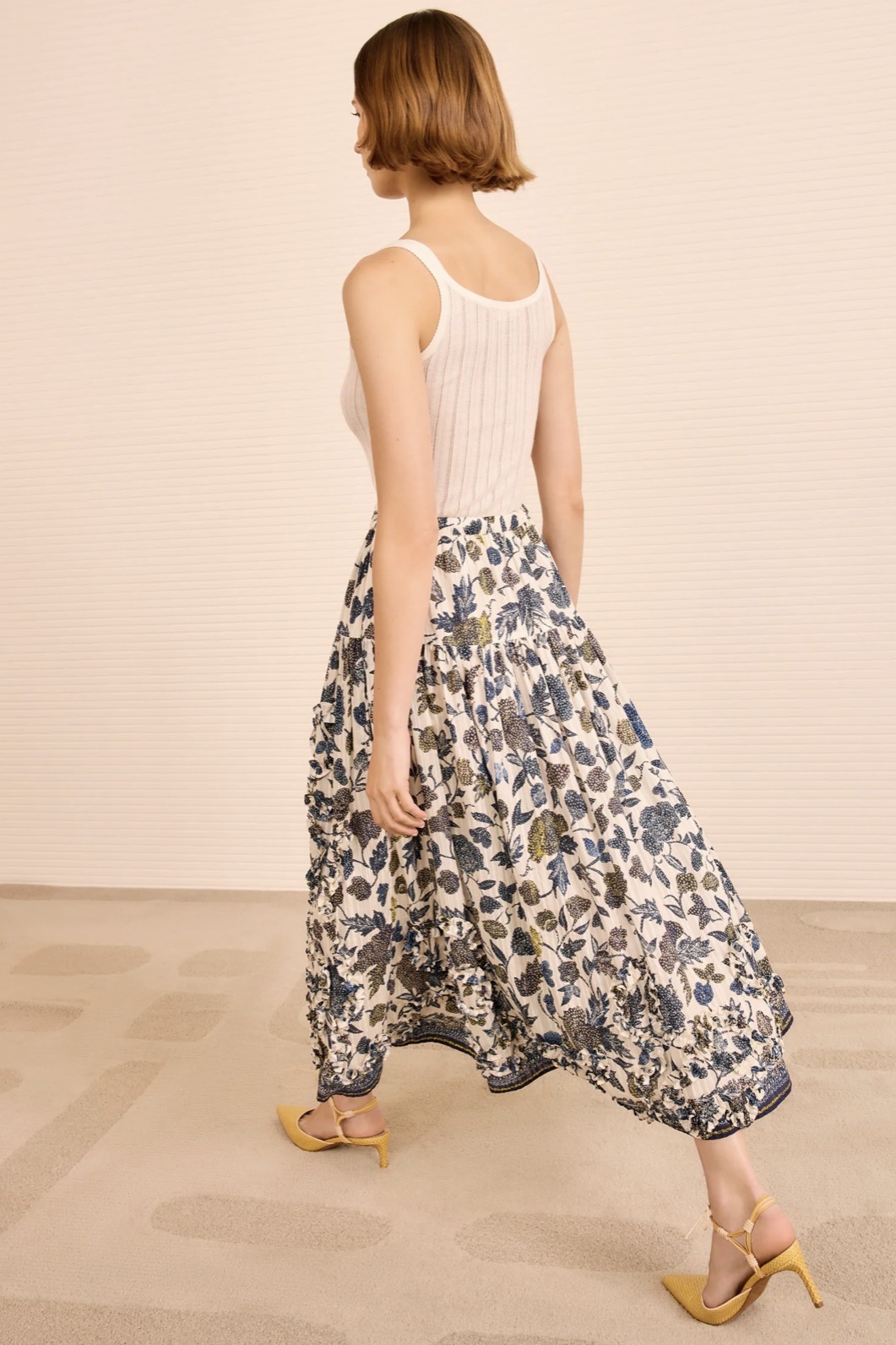 Alexandra Ruffled Midi Skirt Porcelain
