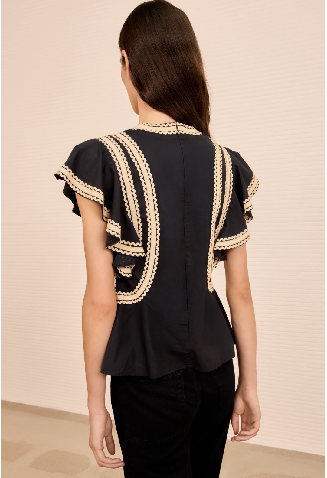 Anora Flutter Sleeve Top Noir