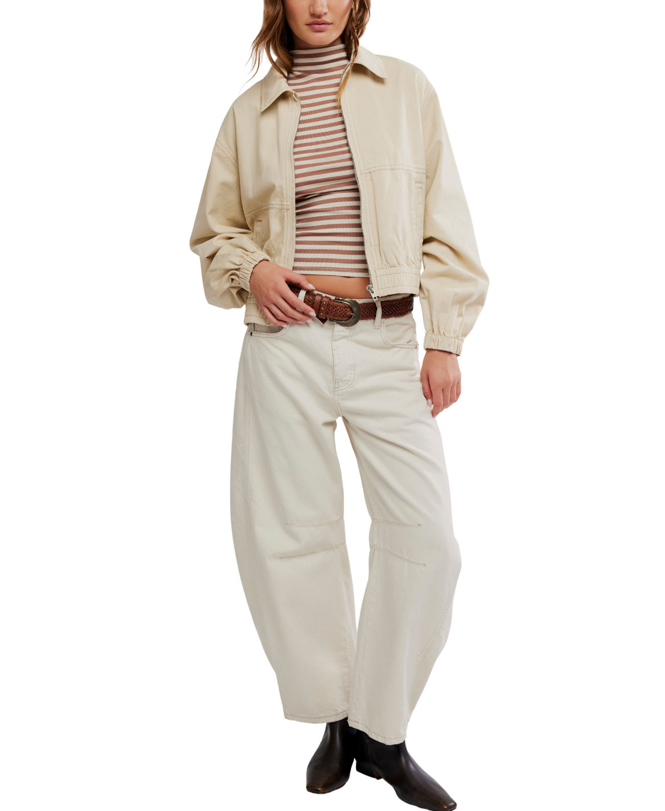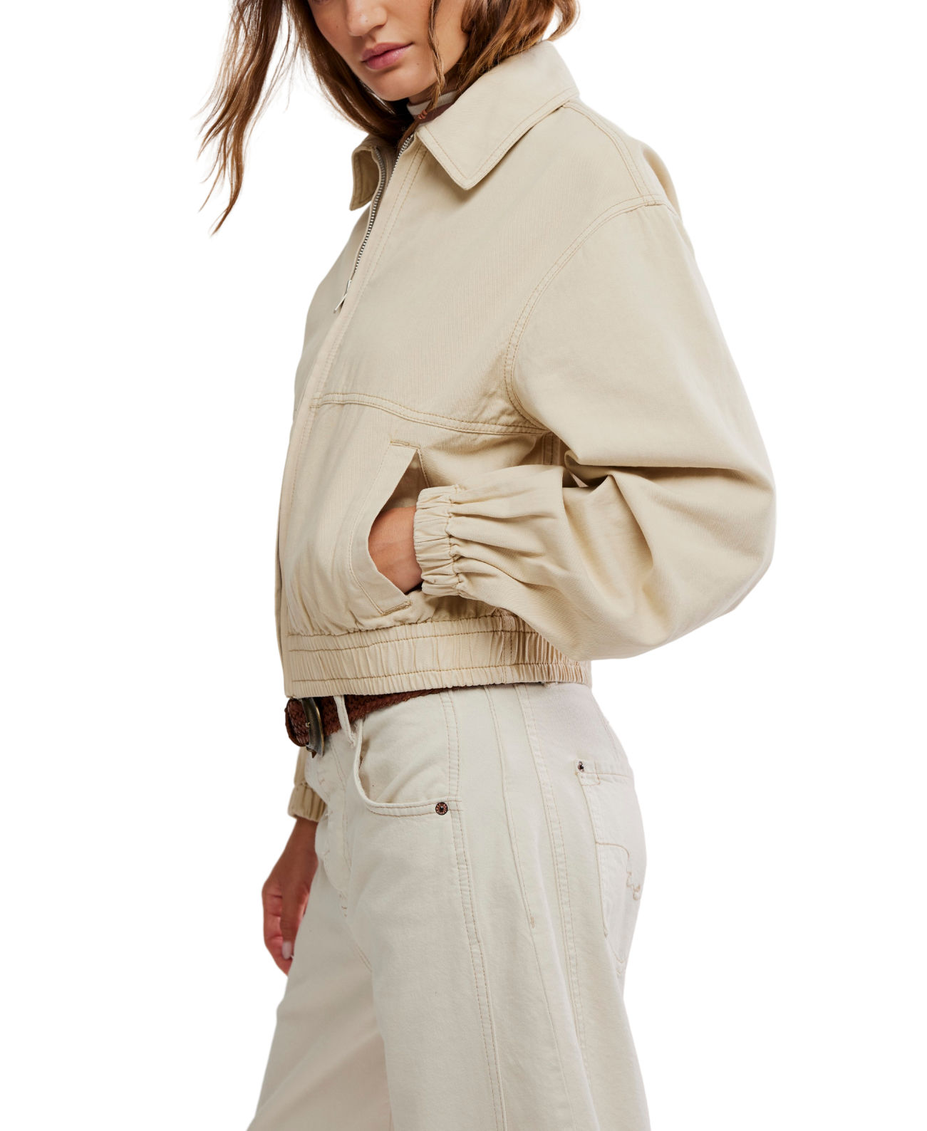 A modern bomber-style essential in soft cotton twill. Designed with an elasticated hem and refined silhouette, it layers seamlessly over denim and dresses alike.