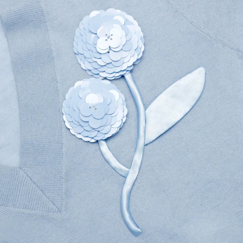 A timeless essential with an elevated twist, this blue wool-cashmere knit features a sculptural floral detail for a refined, feminine finish.