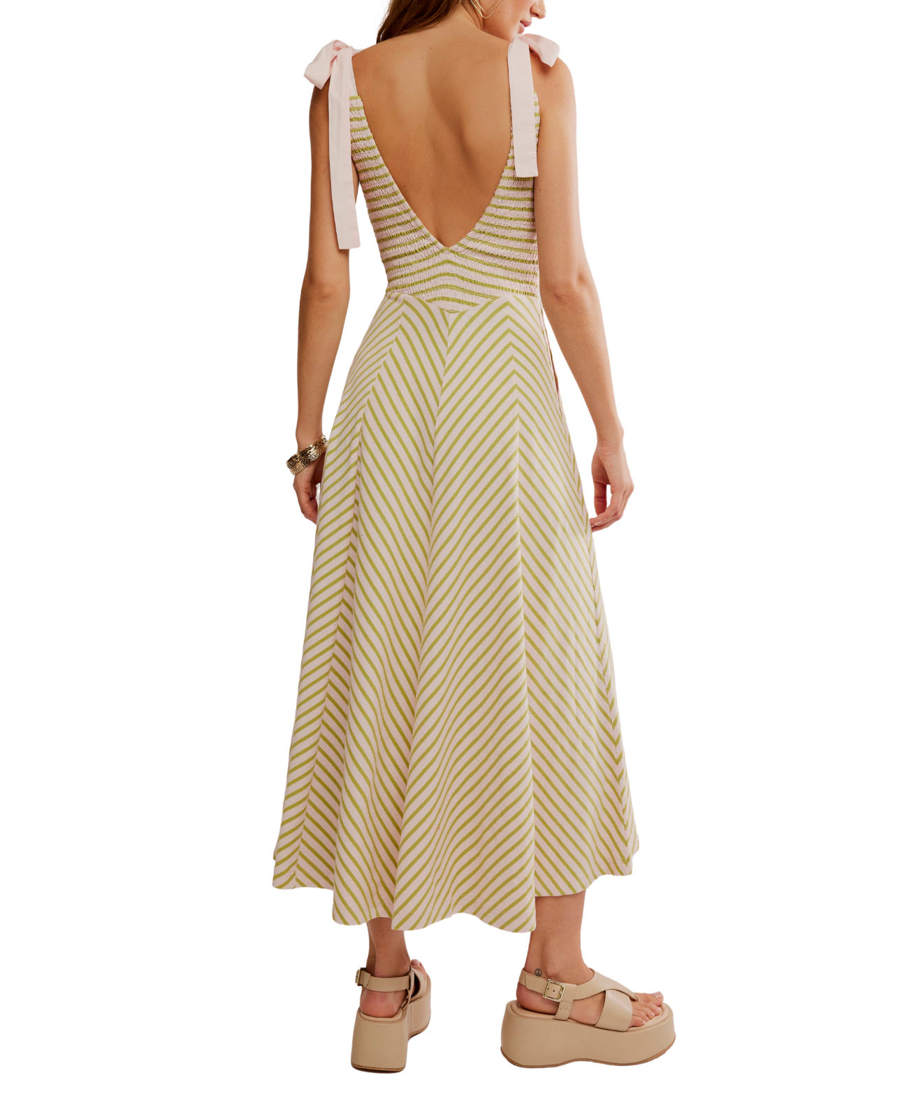 A beautifully feminine cotton midi with subtle structure. Designed with a smocked bodice and bow-tied straps for a flattering, romantic silhouette.