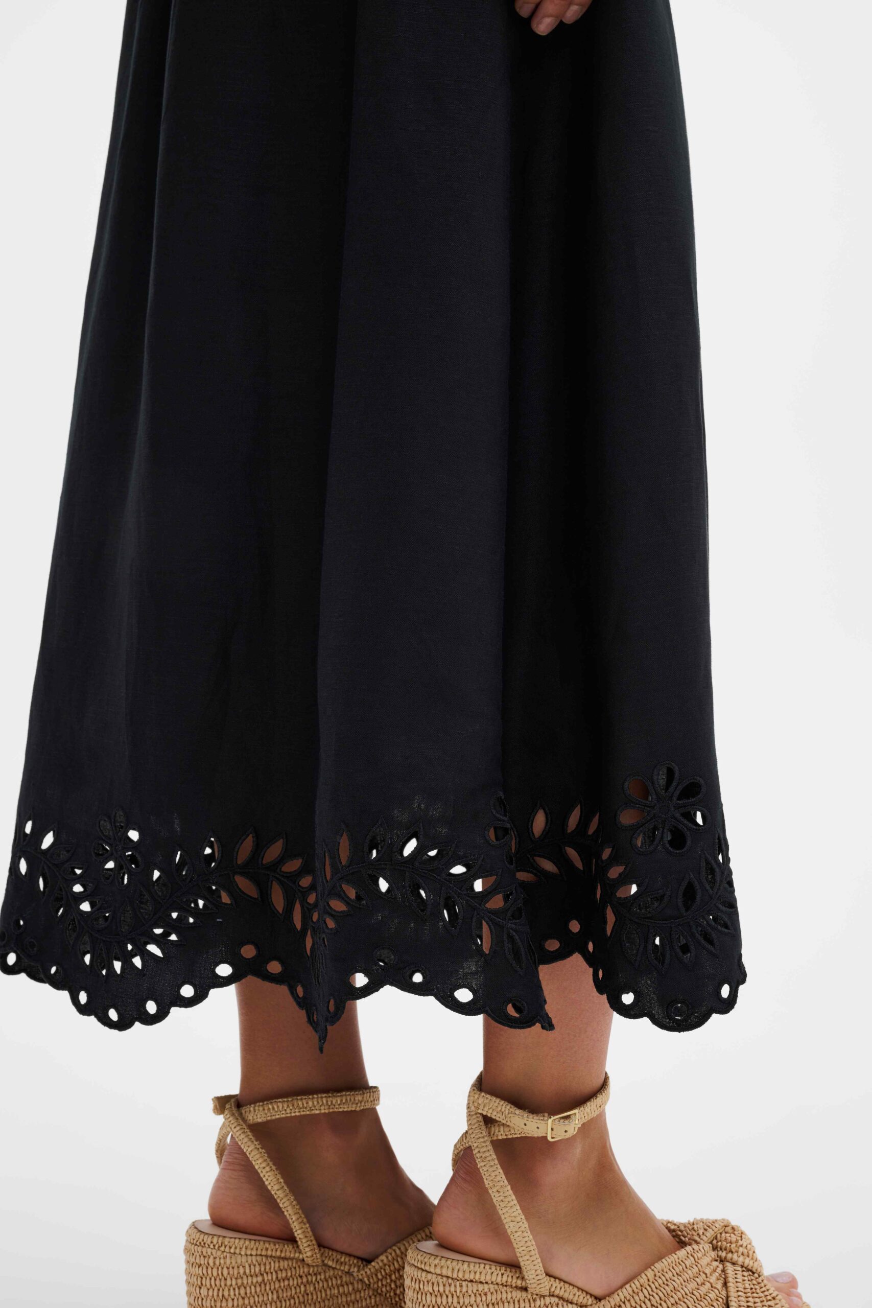Effortless elegance in Black, this maxi skirt is crafted from a breathable linen blend with delicate broderie anglaise detailing.
