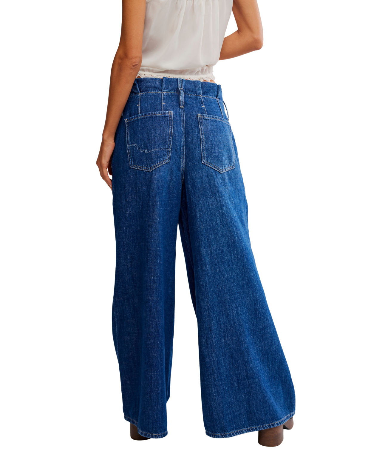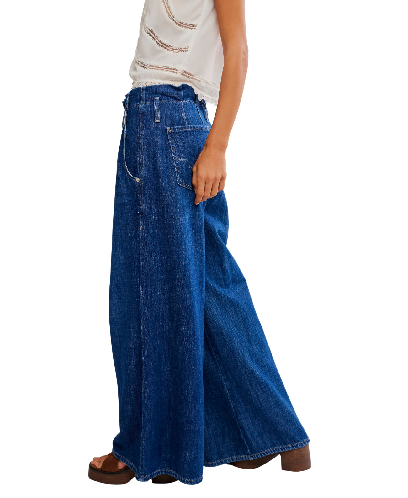 Designed with a super high-rise waist and a wide-leg silhouette, they feature structured panelling that creates a subtle, skirt-inspired effect.