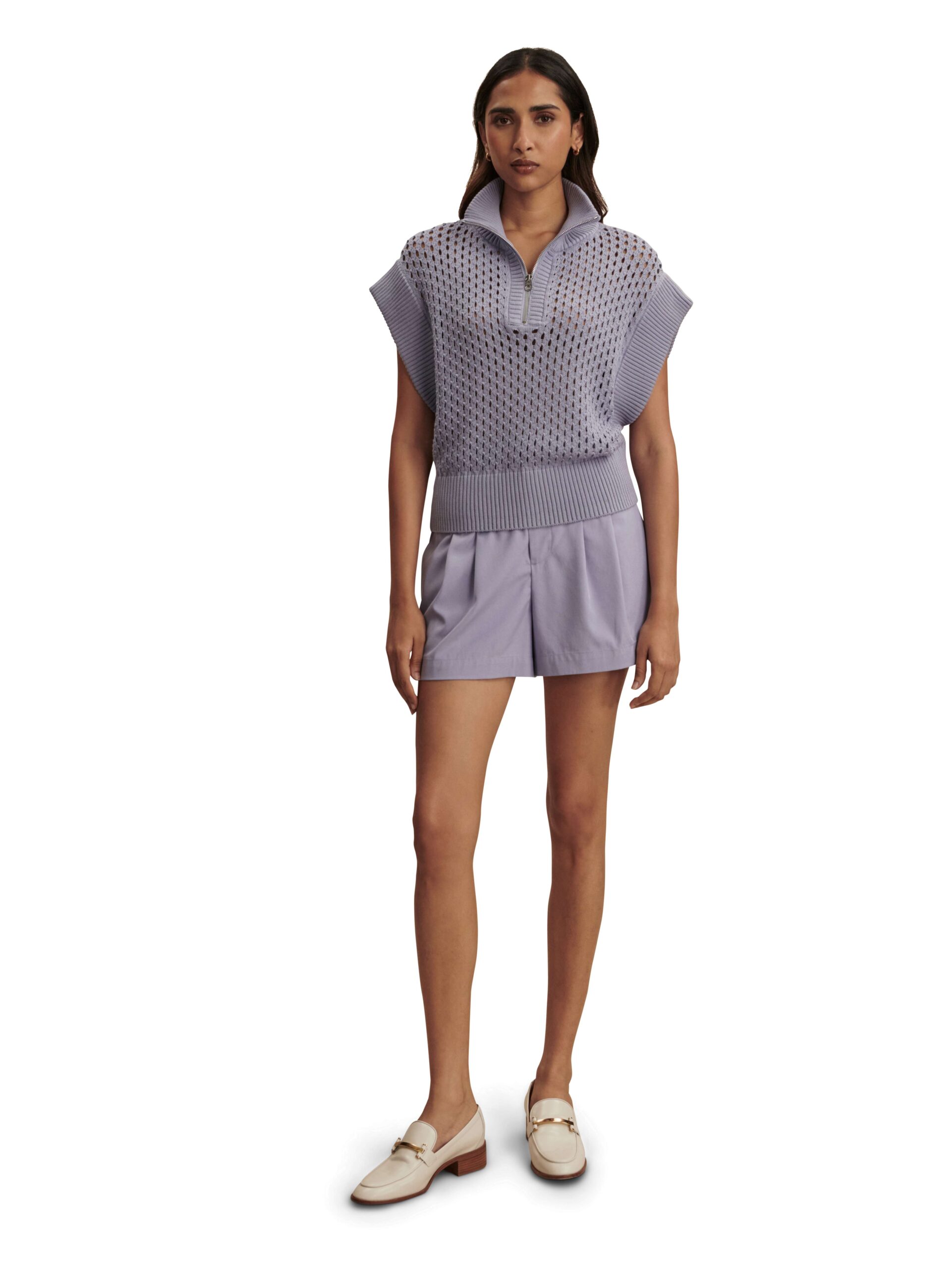A modern statement knit designed for effortless layering, the Gaines top features an oversized half-zip silhouette with chic cap sleeves.