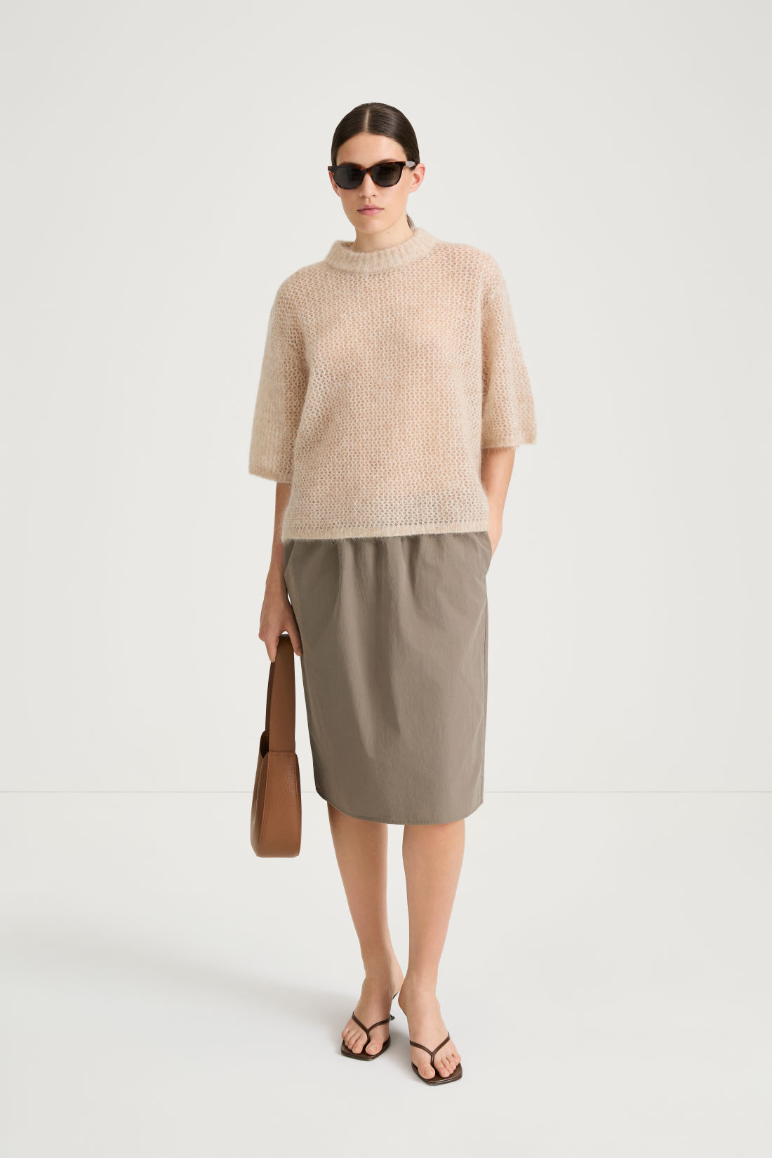 A refined boat neckline softly frames the shoulders, while the streamlined silhouette adds effortless allure.