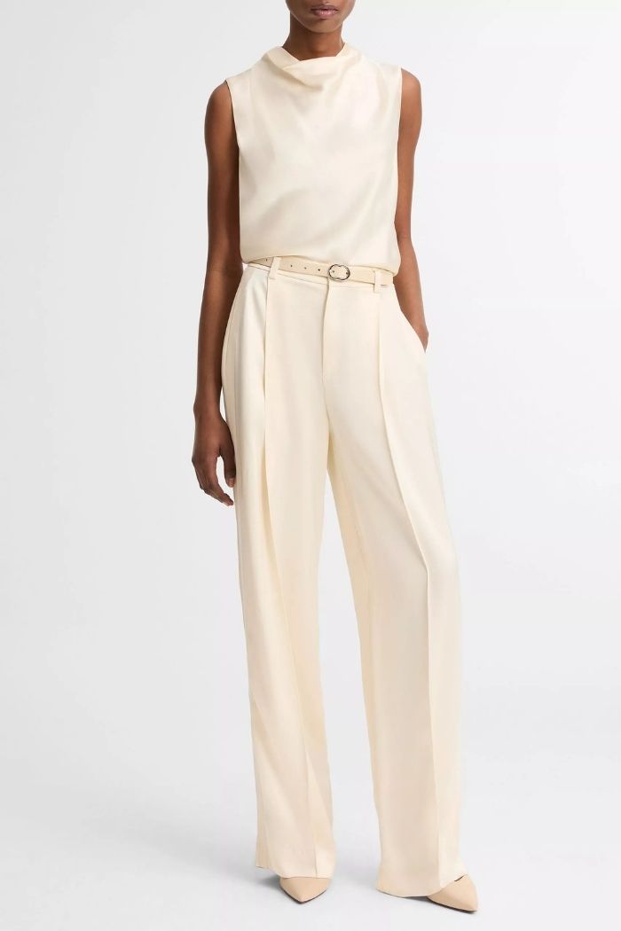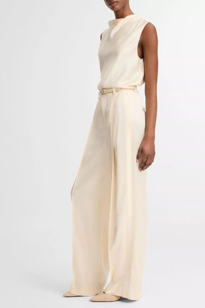 High Waist Satin Trouser Flax