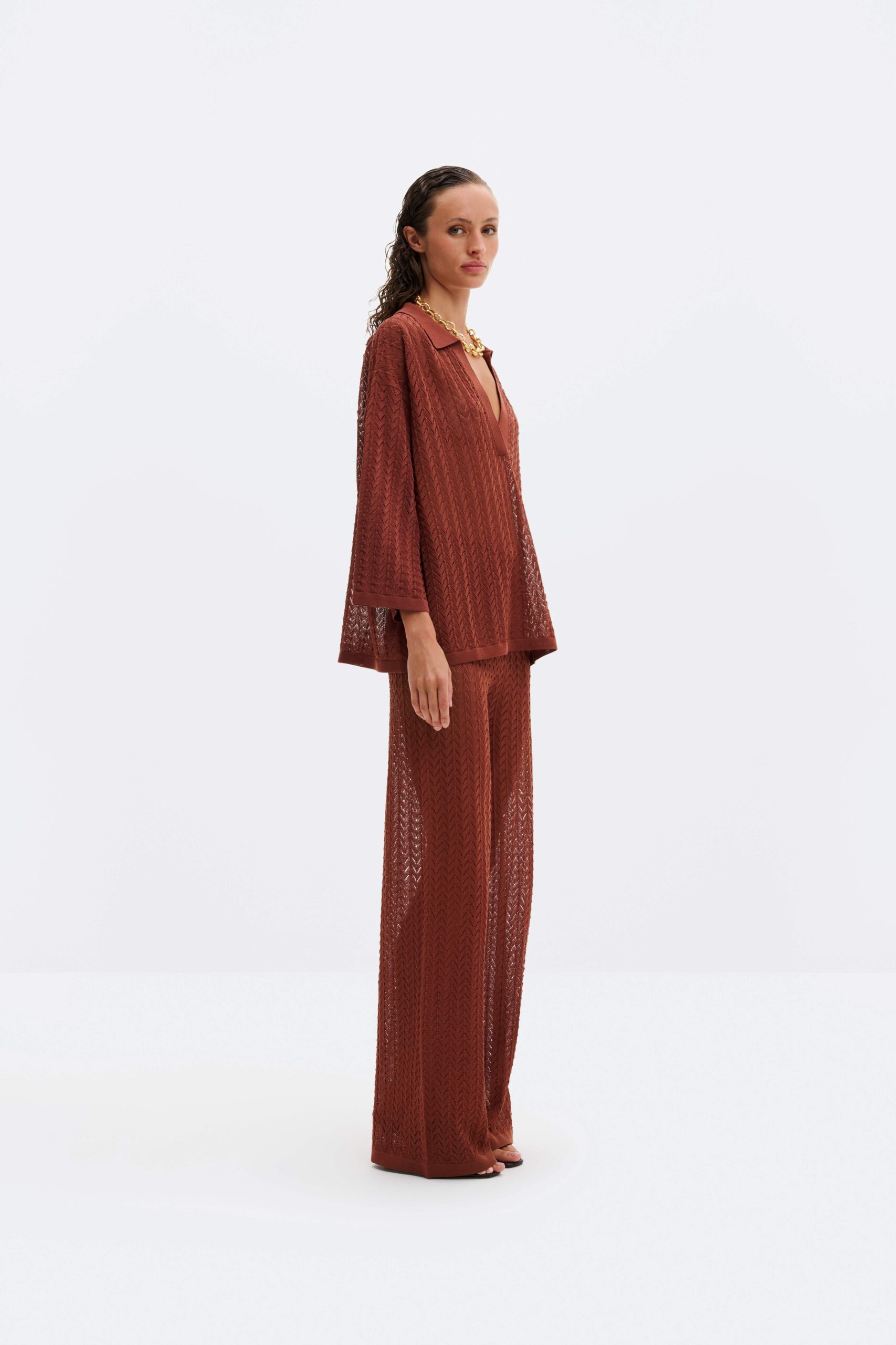 Imene pointelle polo shirt Rust