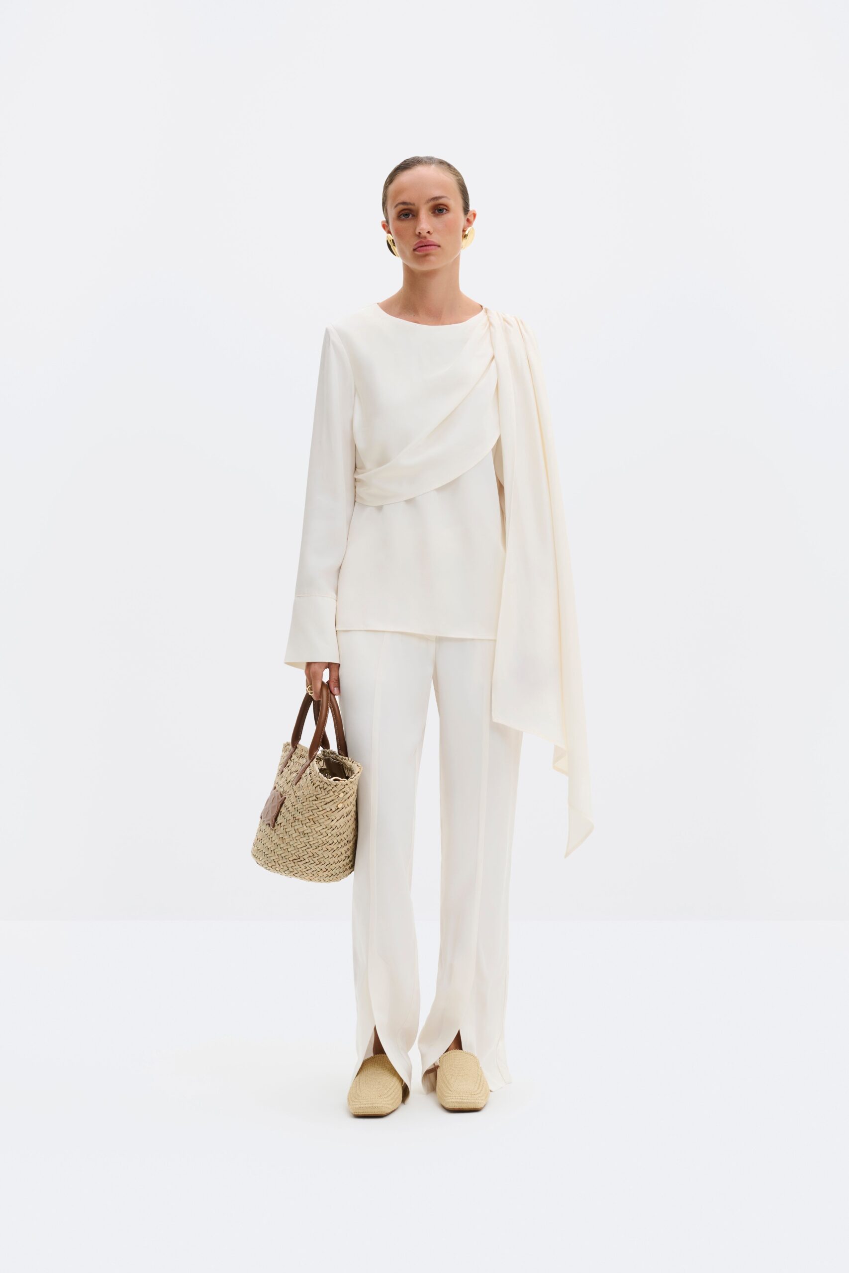 Designed to gently contour the body through the waist before flowing into a midi-length skirt for effortless movement.