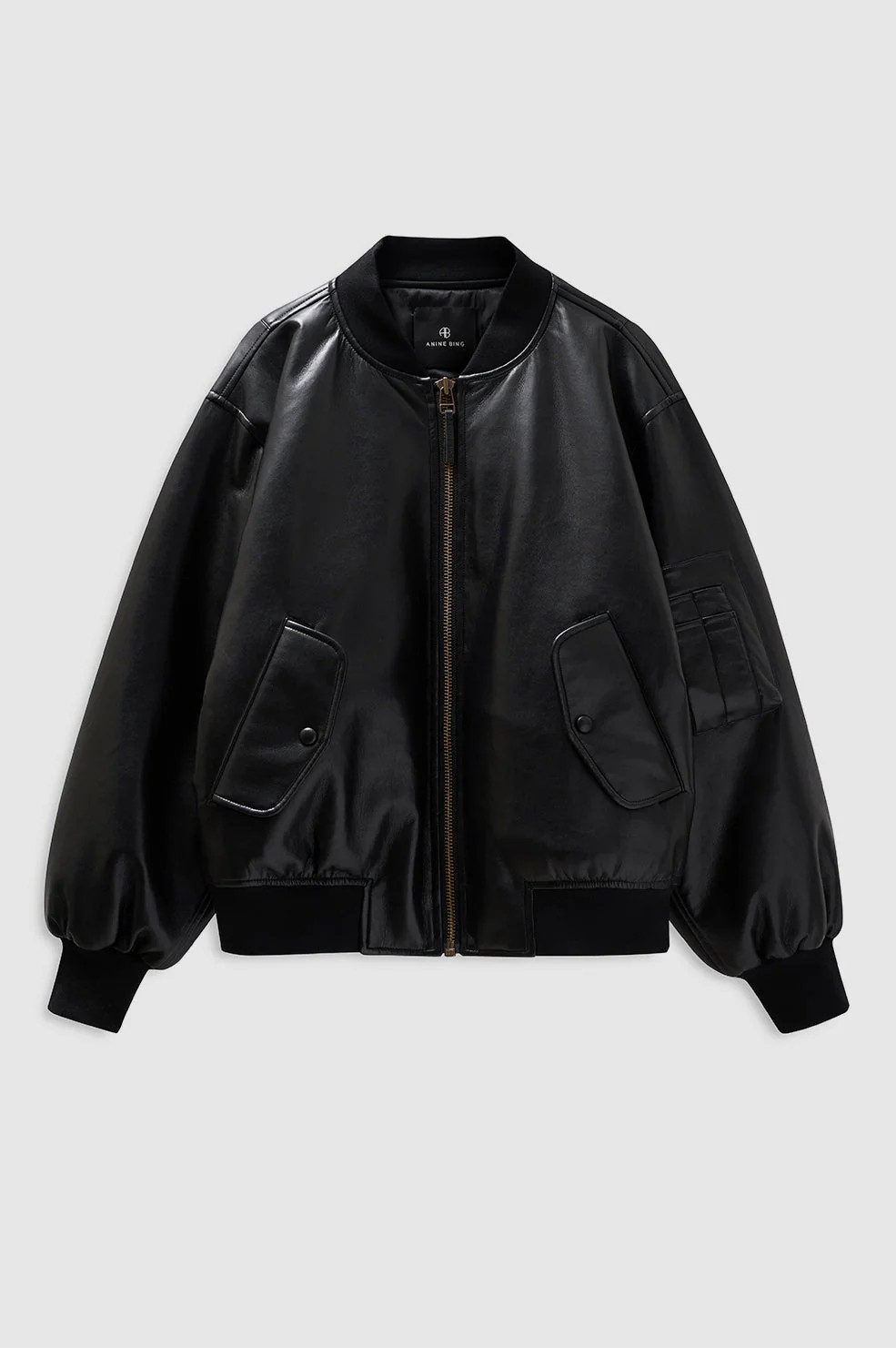 Crafted from regenerated leather with a soft, padded structure, this bomber elevates utilitarian style through a sleek, modern lens.