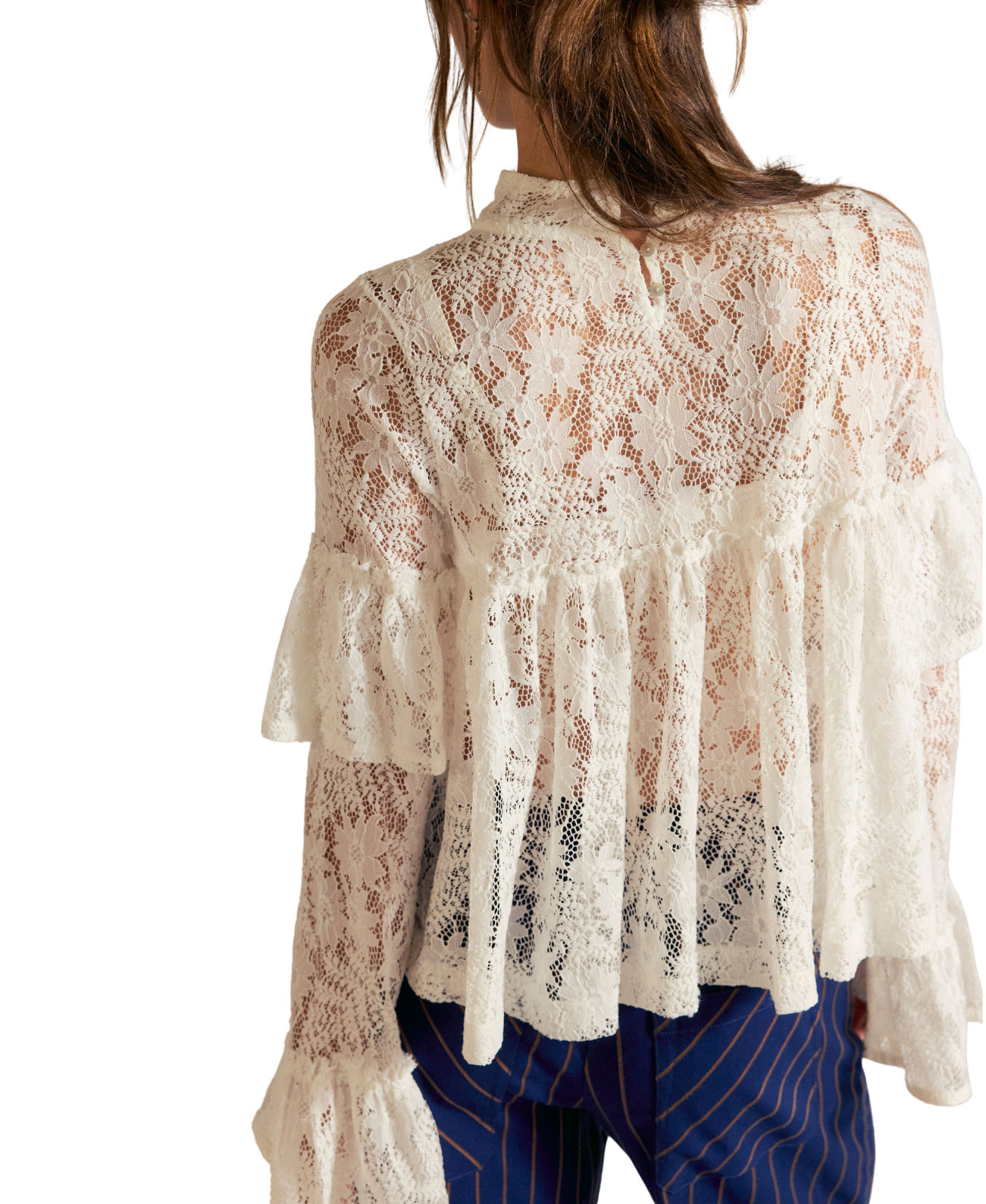 This lace blouse brings romantic elegance to everyday dressing.