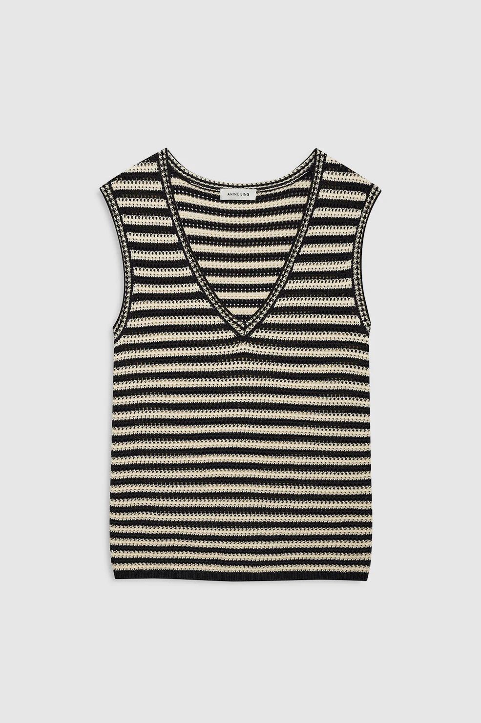 Designed in classic black-and-cream stripes, it offers a subtle Parisian-inspired feel with a softly structured knit texture.