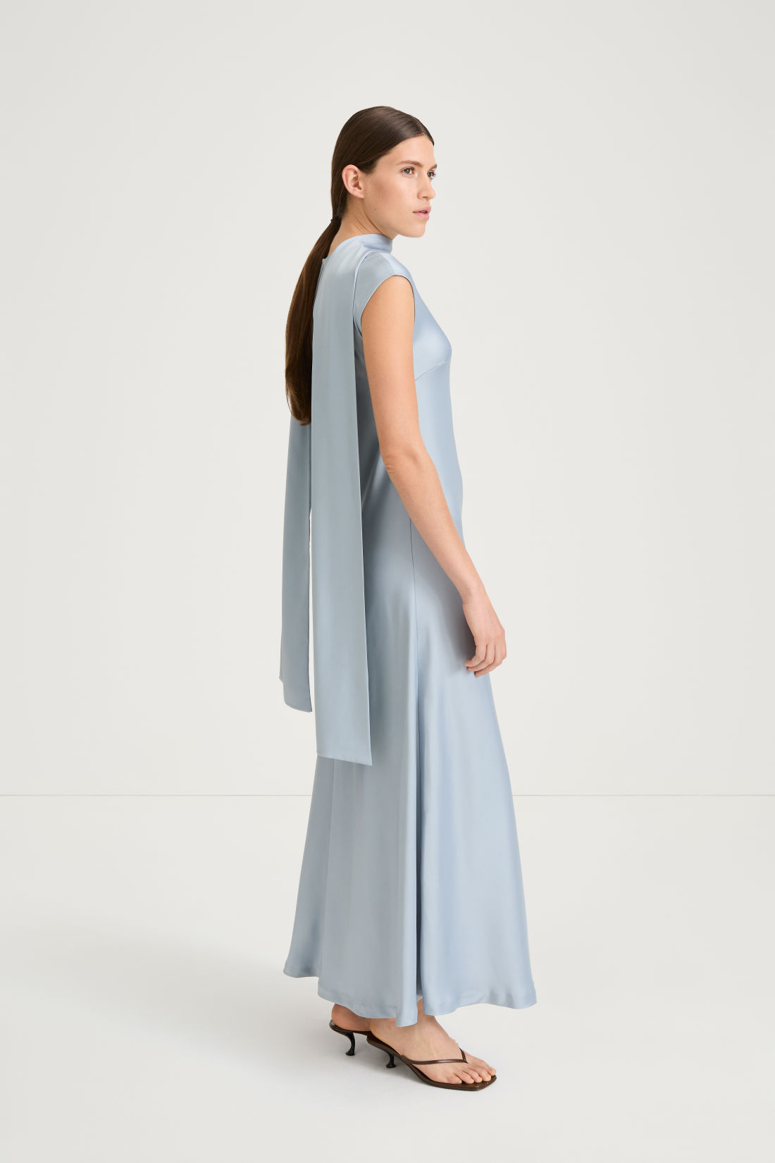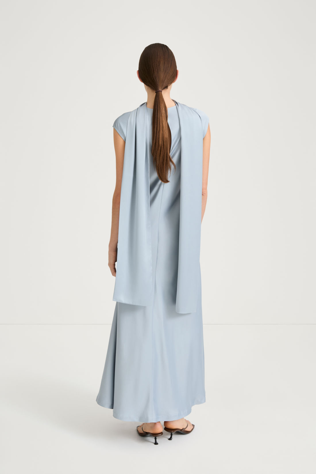 Designed in a long, slim silhouette with a refined double-layer construction, it drapes beautifully to add subtle sophistication to both everyday outfits and evening ensembles.