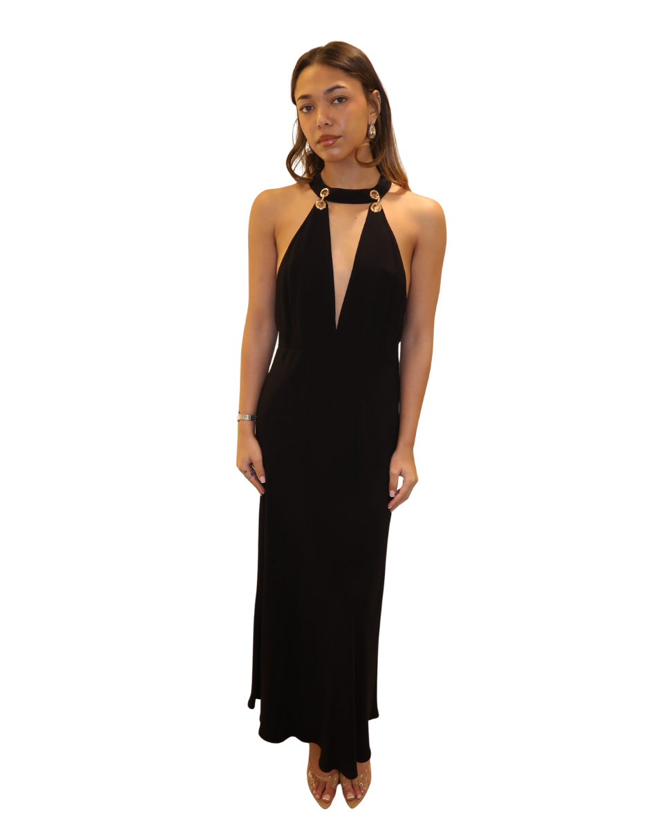 Radiate romance in the Melora Dress, a maxi silhouette designed for festive elegance.