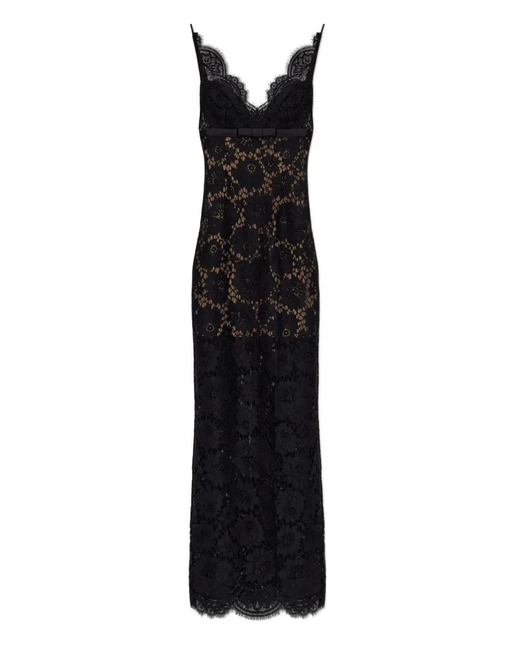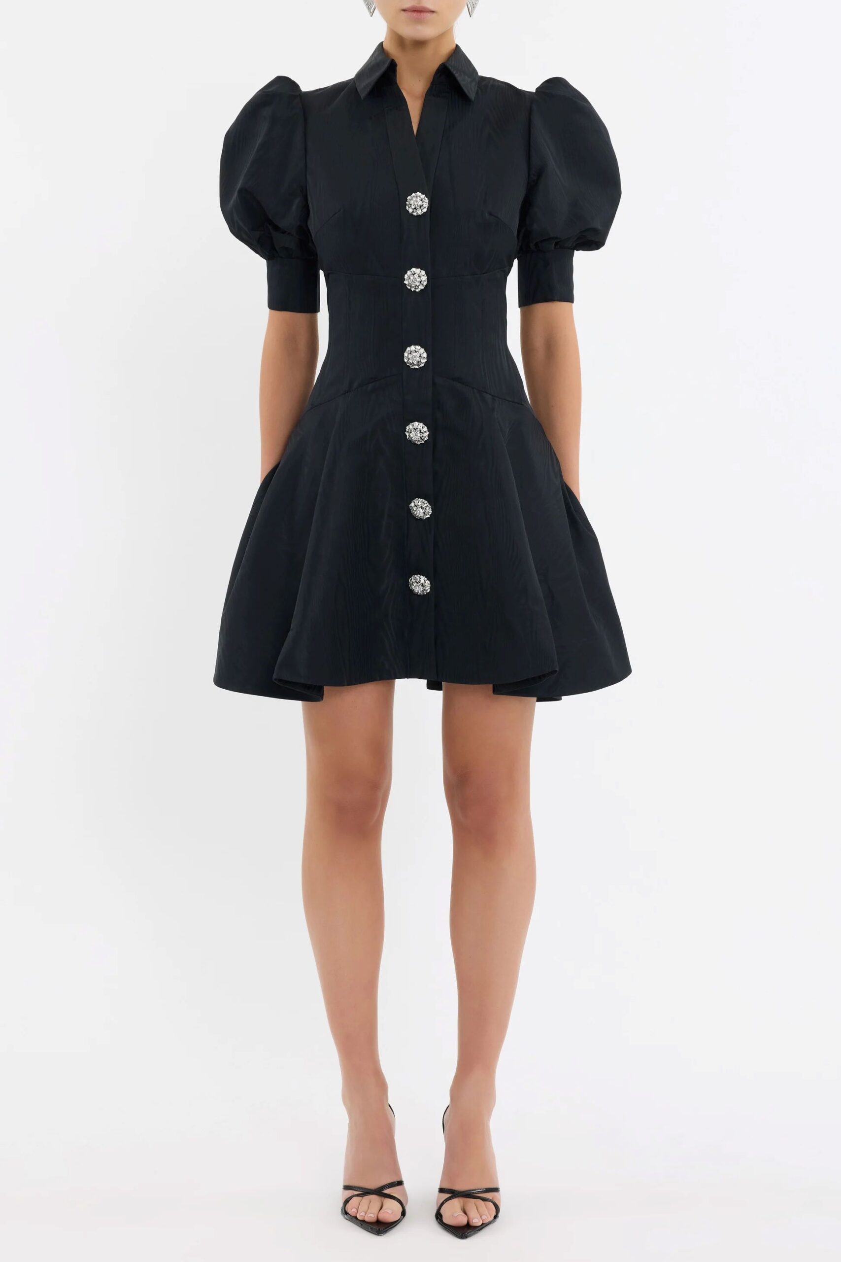 Its high neckline and gathered waist create a flattering silhouette, while the small back slit adds a hint of movement.