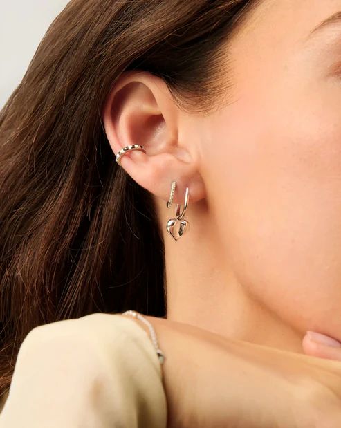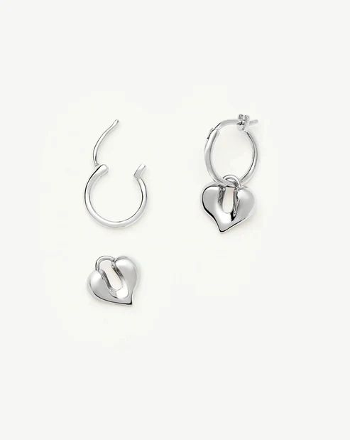 A modern take on everyday jewellery, these charm hoops feature sculptural heart-shaped drops with a fluid liquid heart motif.