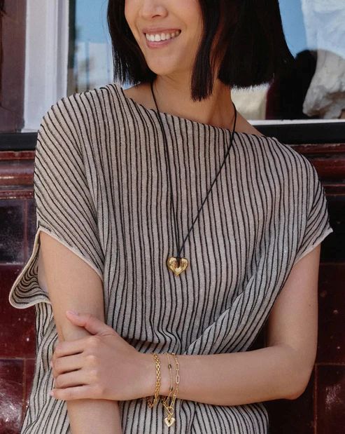 A modern everyday statement, this sculptural pendant cord necklace features a fluid liquid heart motif inspired by the smooth, ergonomic feel of a polished pebble.