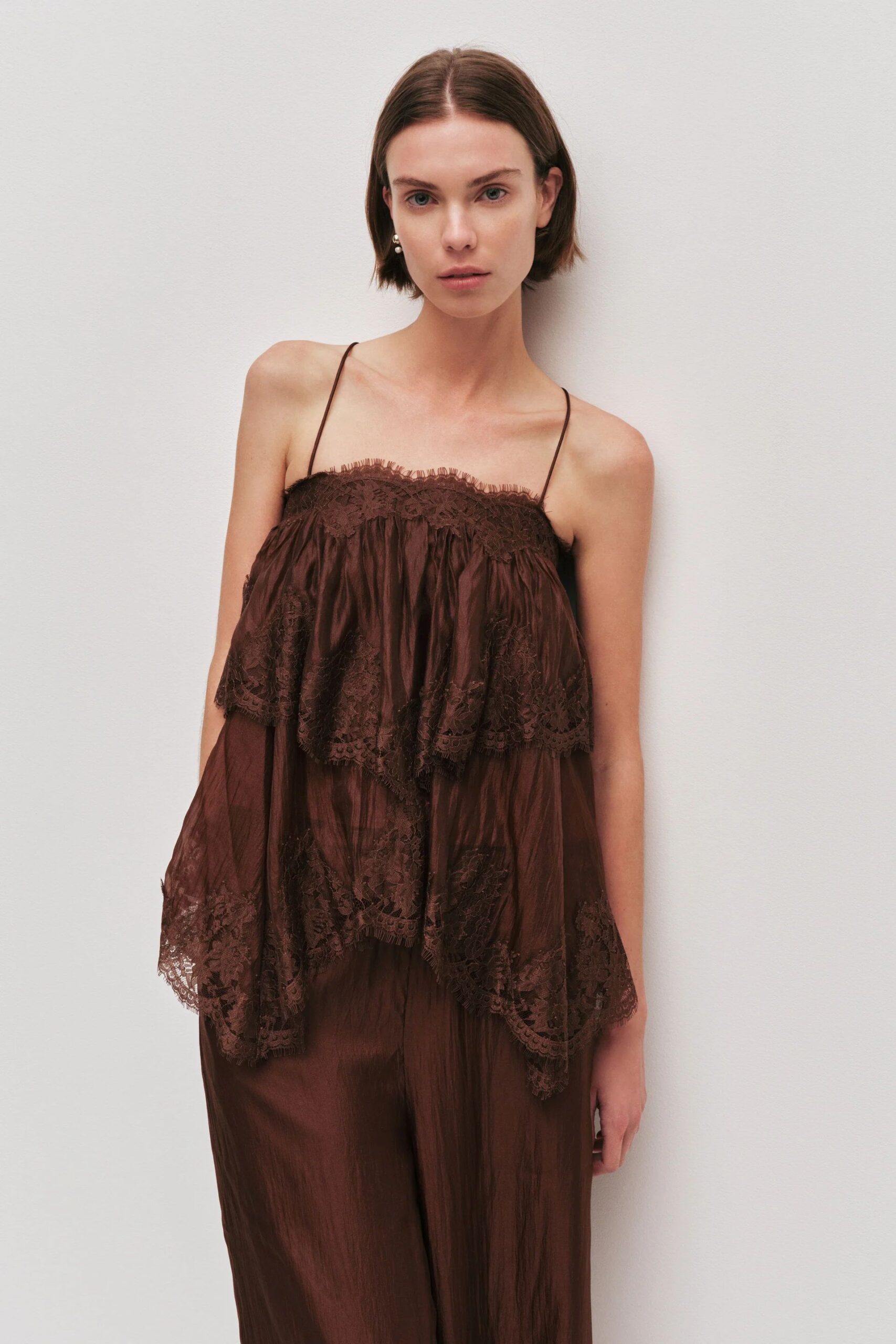 The Ophelia Lace Cami offers a delicate balance of romantic detailing and effortless ease.