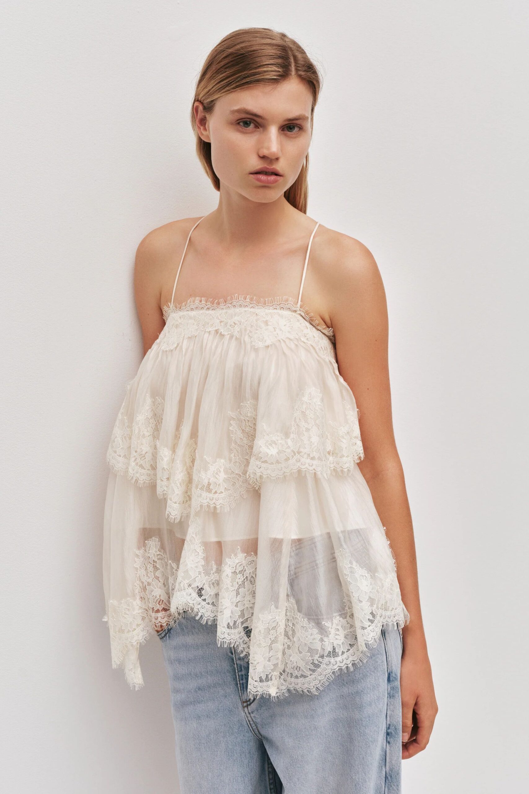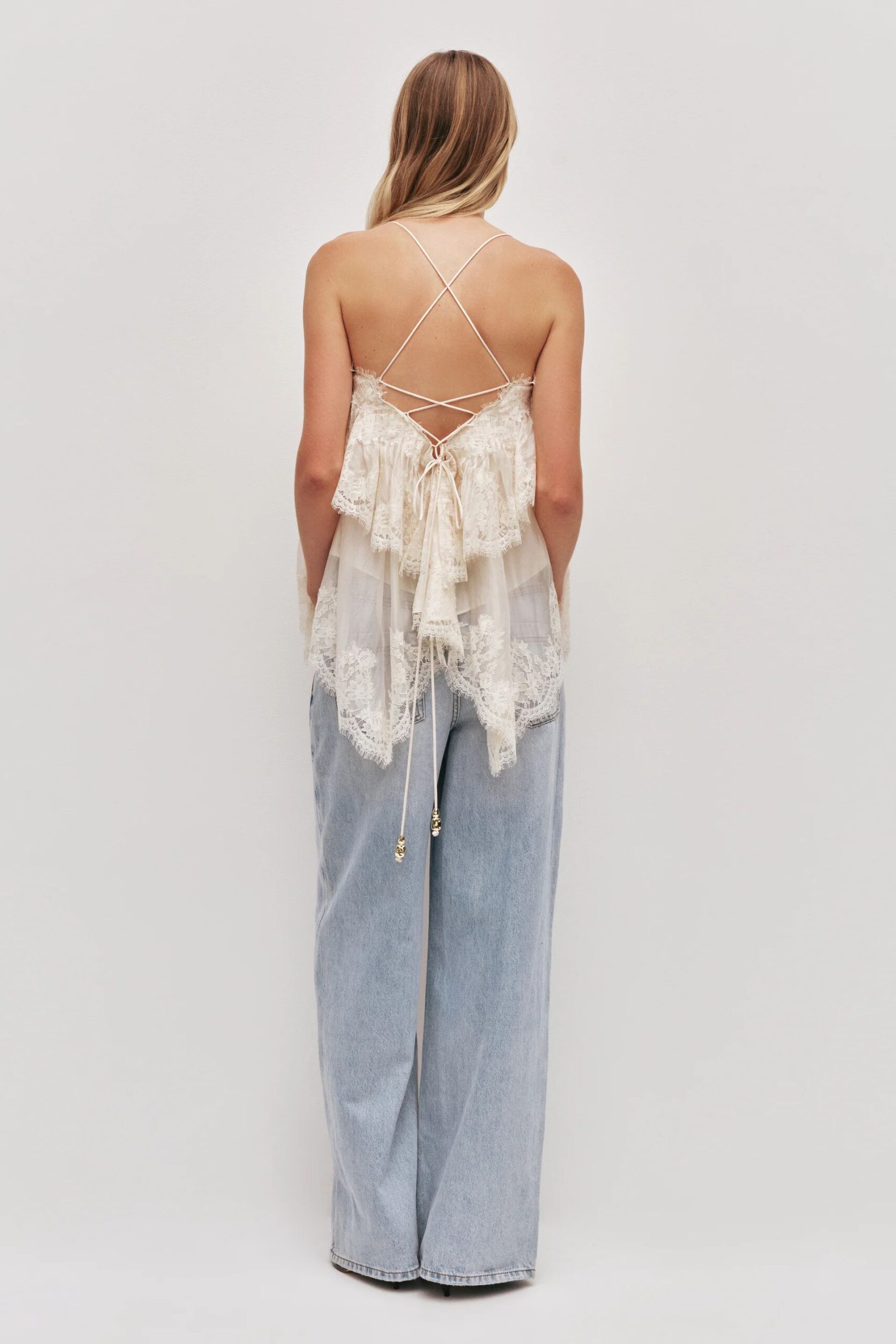The Ophelia Lace Cami offers a delicate balance of romantic detailing and effortless ease.