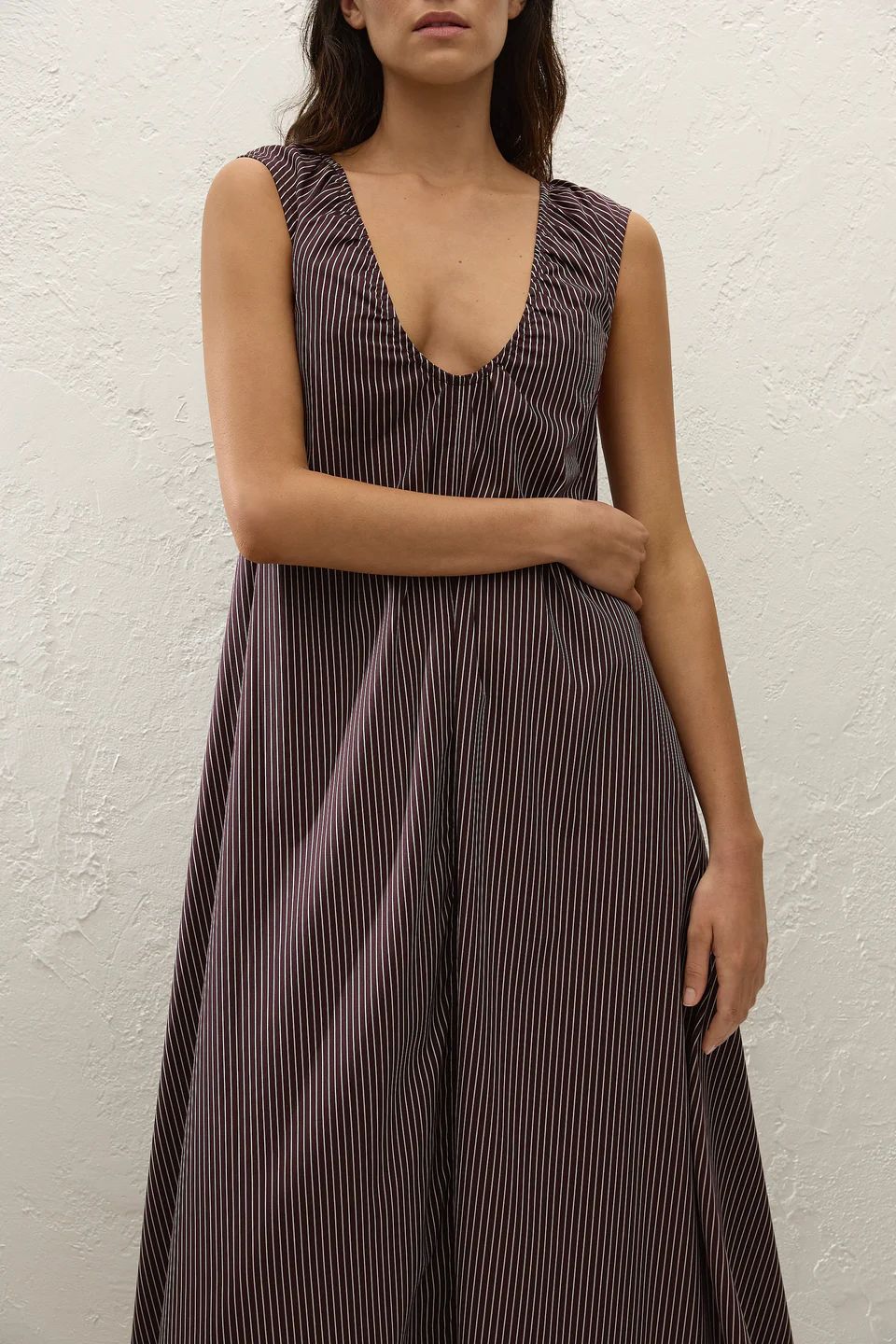 PEDERA MAXI DRESS Rocio Pinstripe Choc