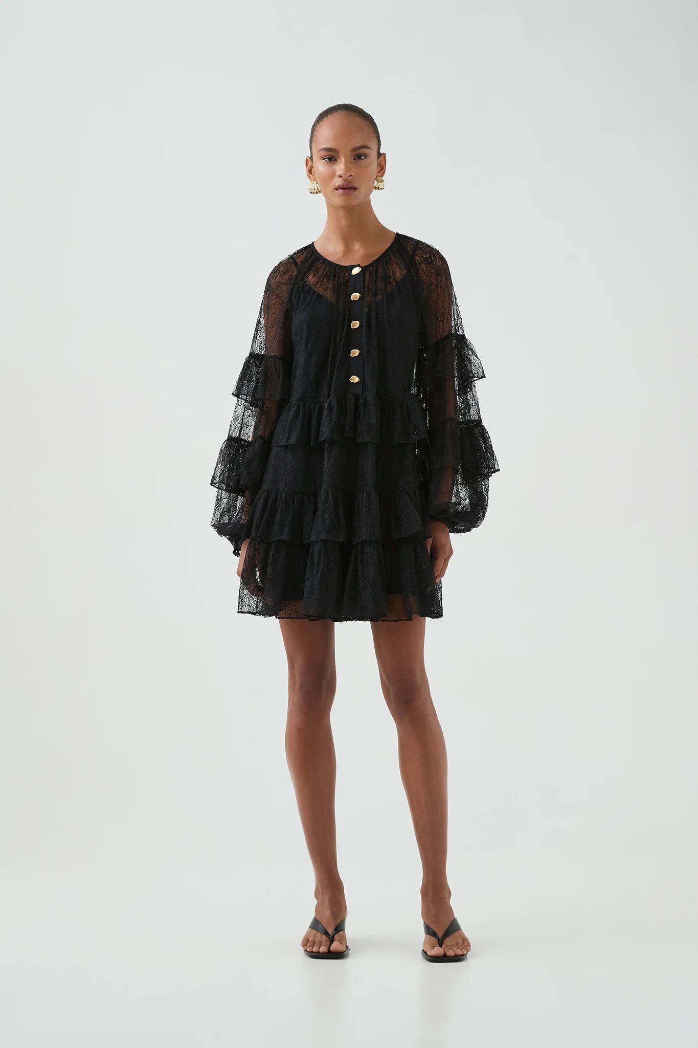 The Primrose Mini Dress is a romantic statement piece with a modern edge.