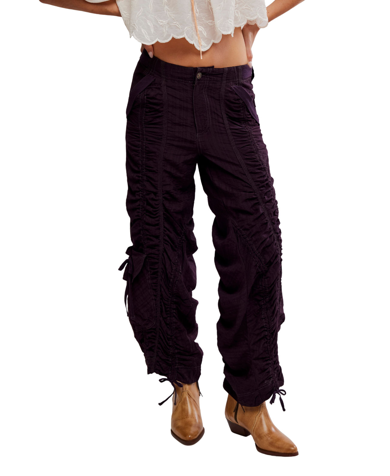 A modern cargo with bold texture, this style features all-over shirring for a sculptural silhouette. Designed for comfort and statement dressing alike.