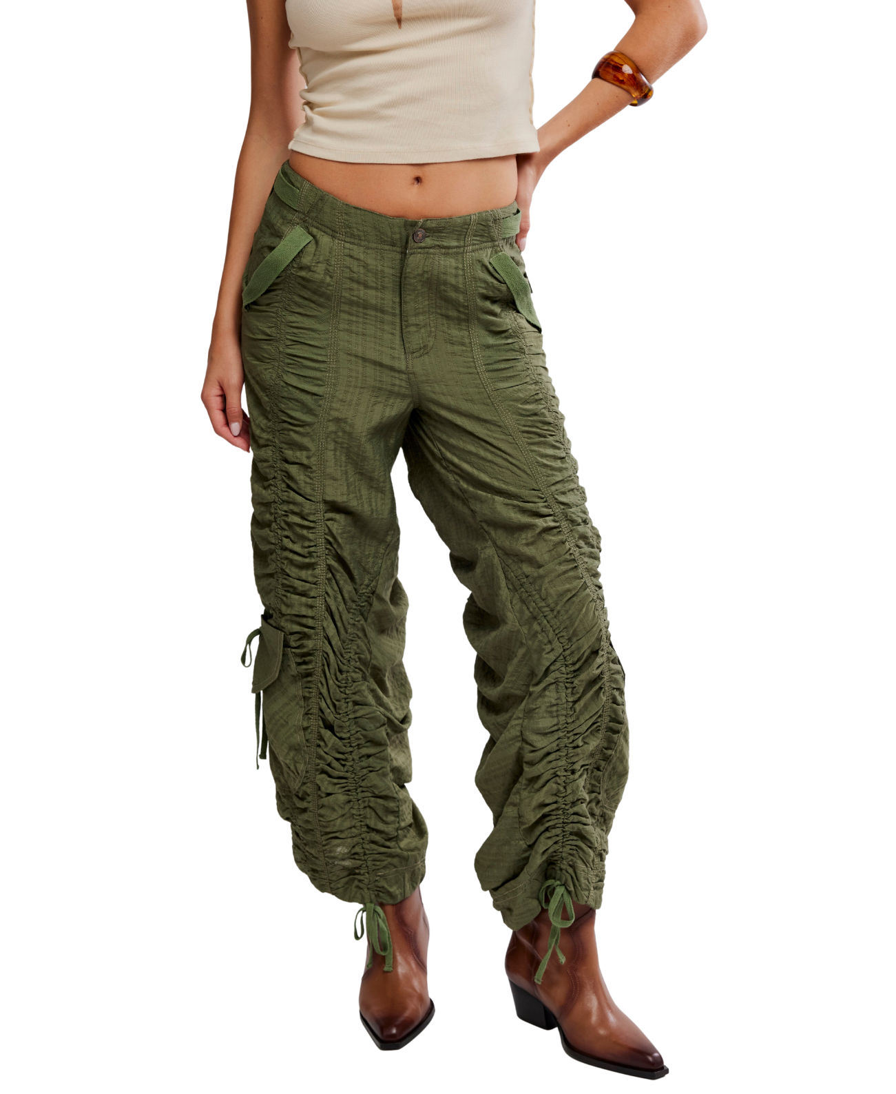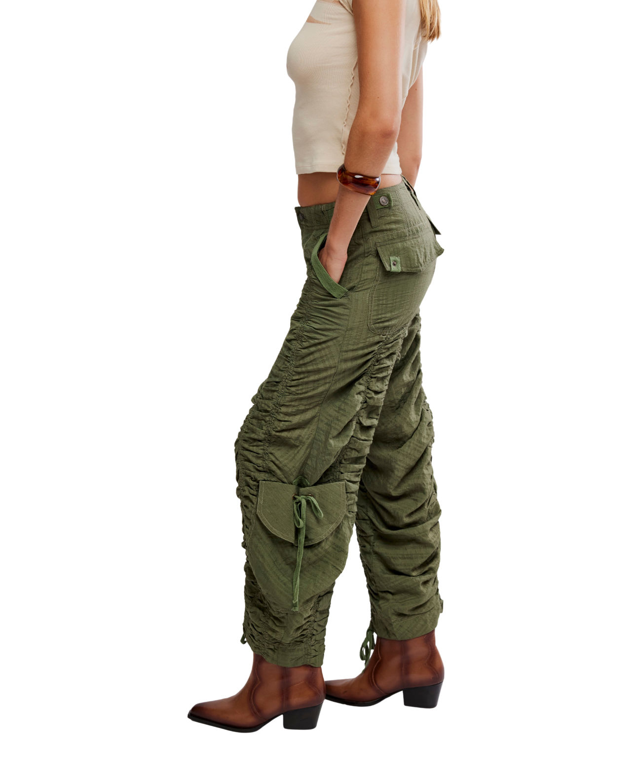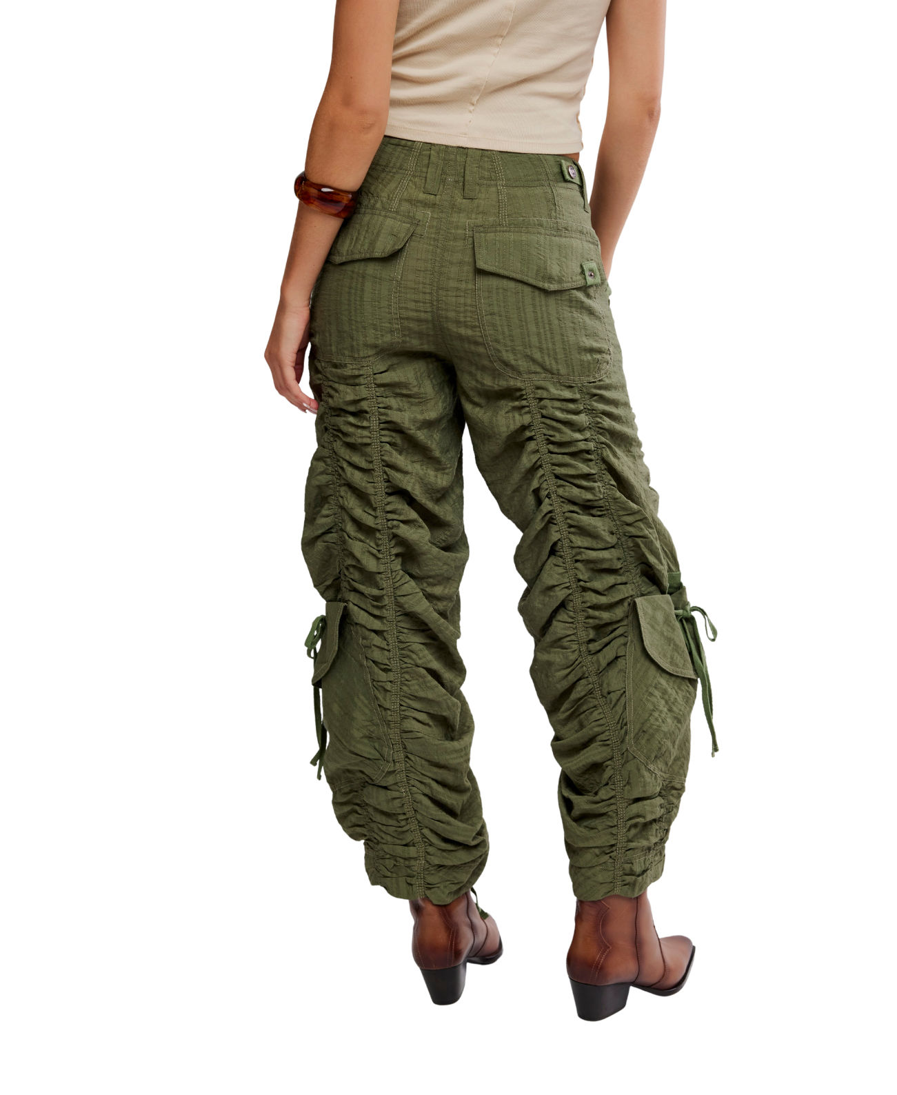 A modern cargo with bold texture, this style features all-over shirring for a sculptural silhouette. Designed for comfort and statement dressing alike.