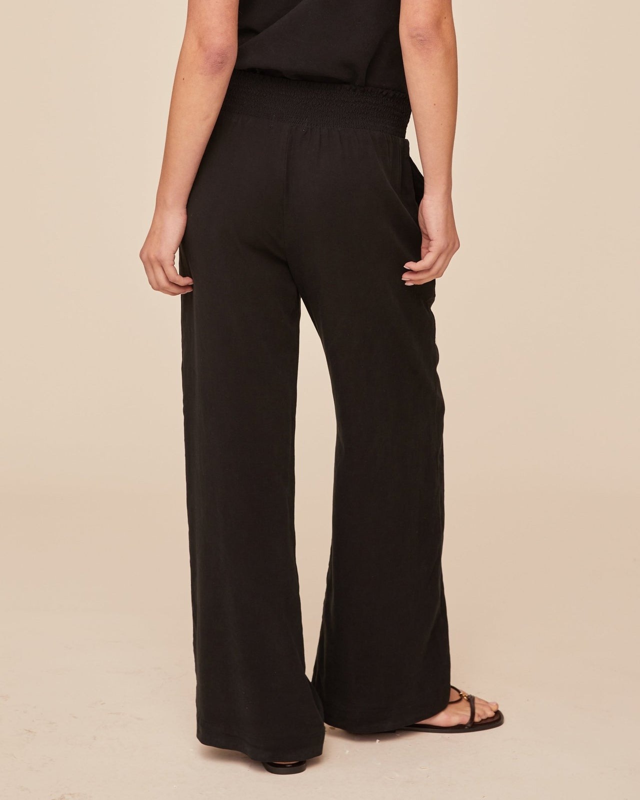 Smocked Waist Wide Leg Trouser Vintage Black