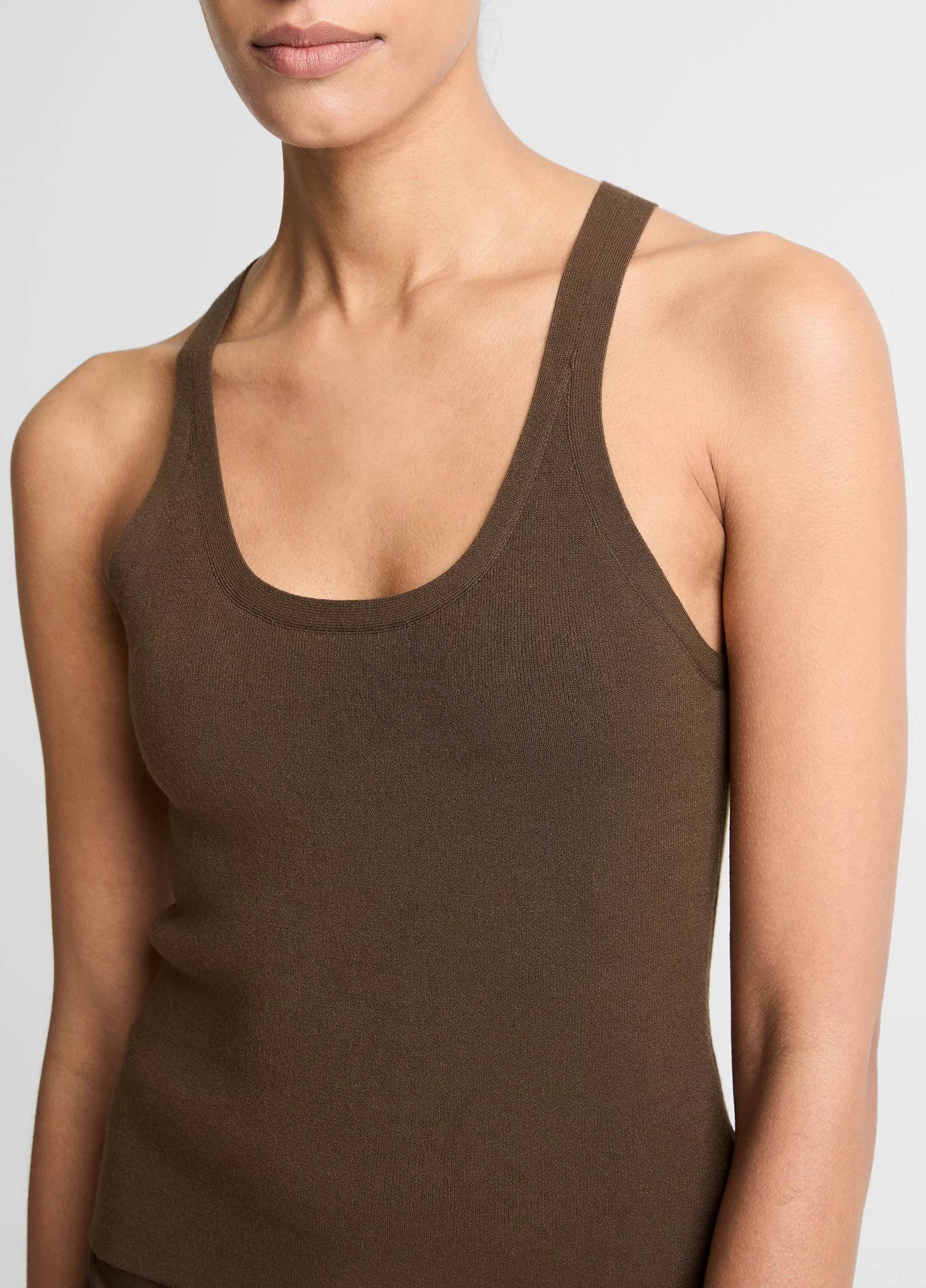 Stretch Viscose Scoop Tank Bark