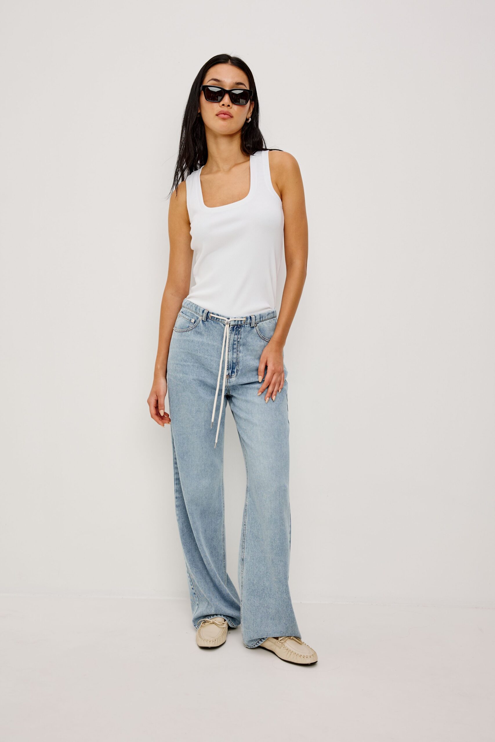 Designed with a flattering high waist and soft front pleats, they create a fluid, elongated silhouette.