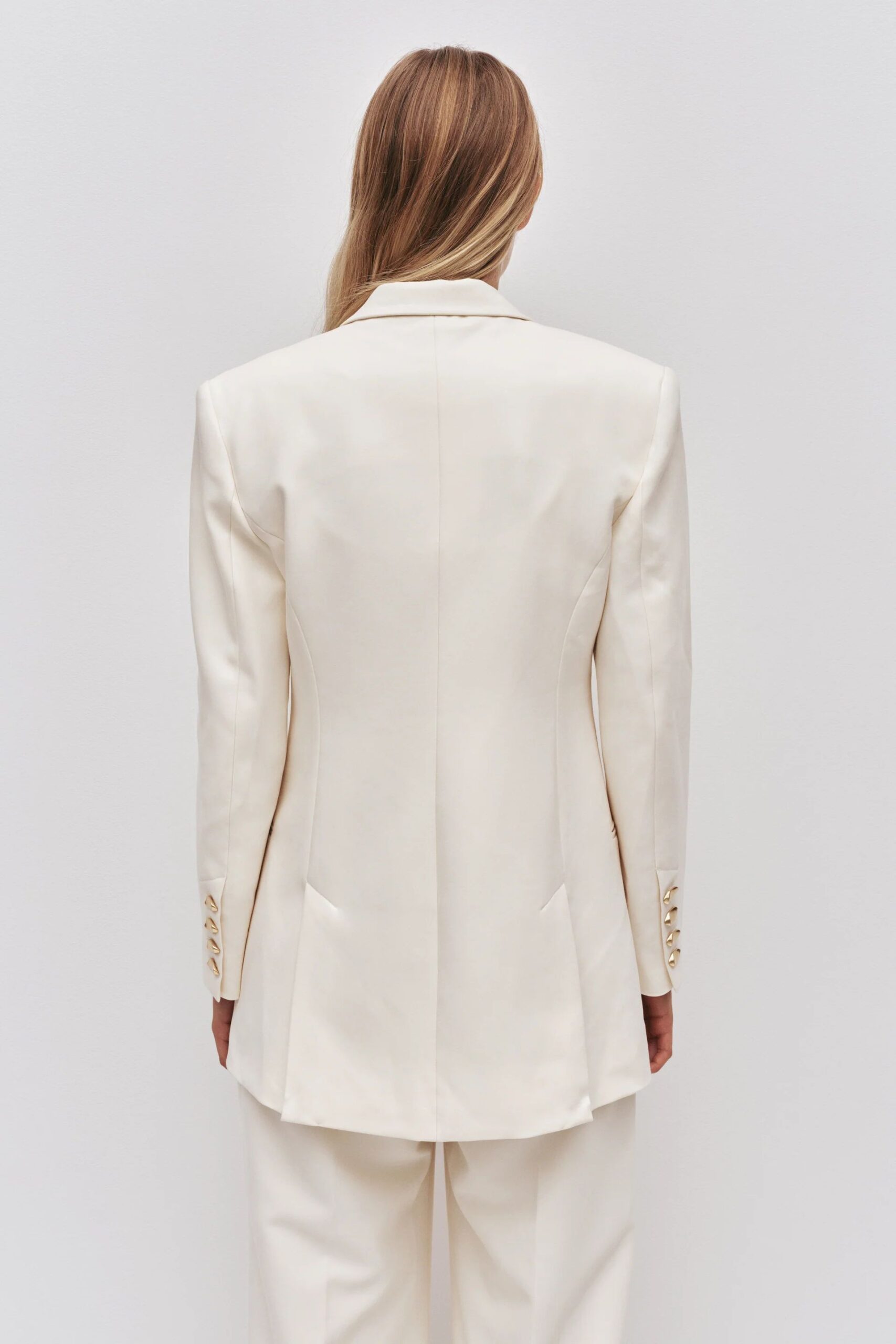 The Vortex Blazer in Vanilla is a refined tailoring piece designed with a modern, structured silhouette.