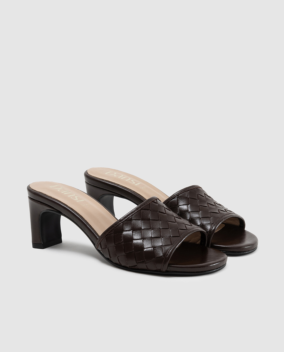 Polished and modern, these woven leather heel sandals feature a sleek slip-on design with a softly structured silhouette.